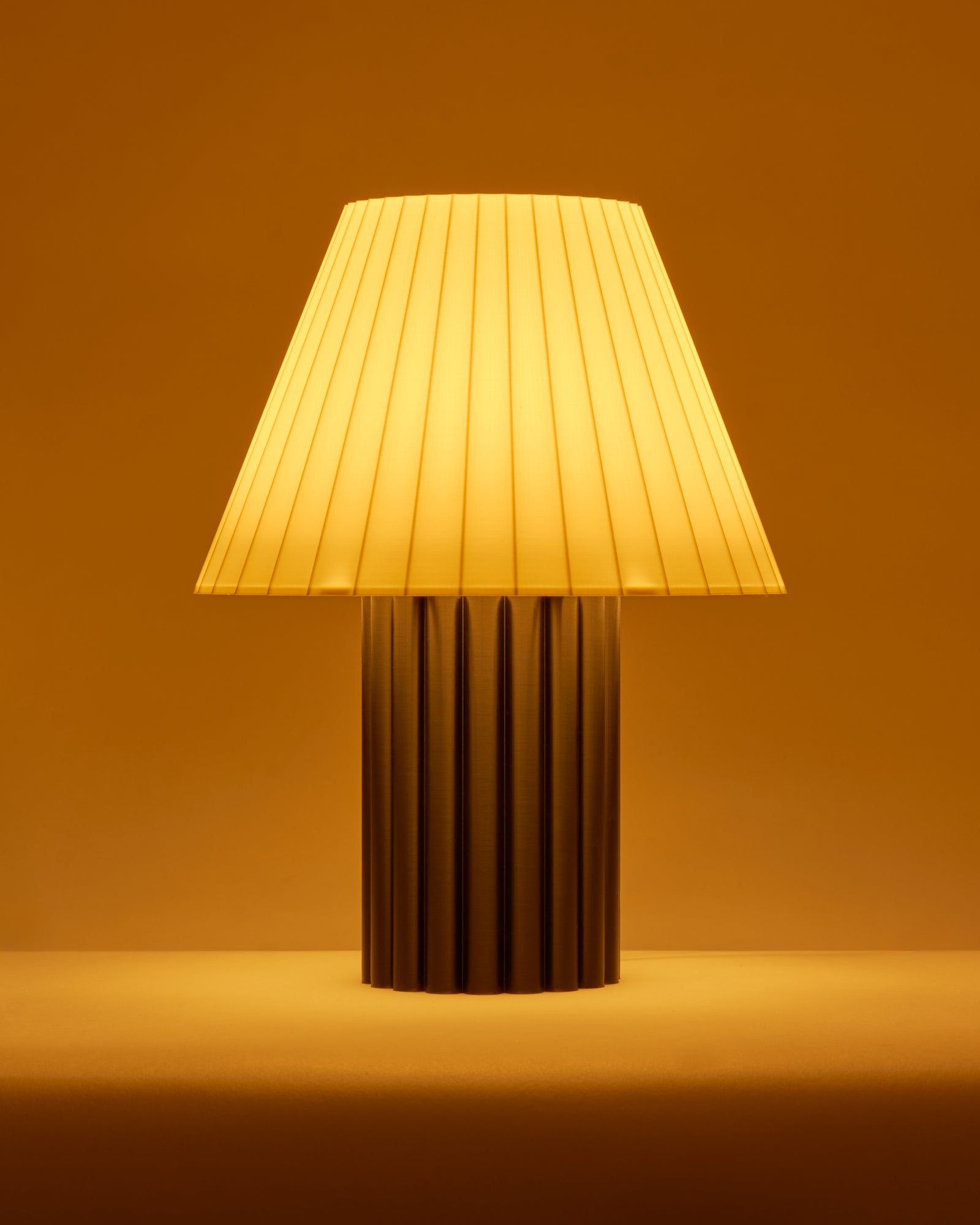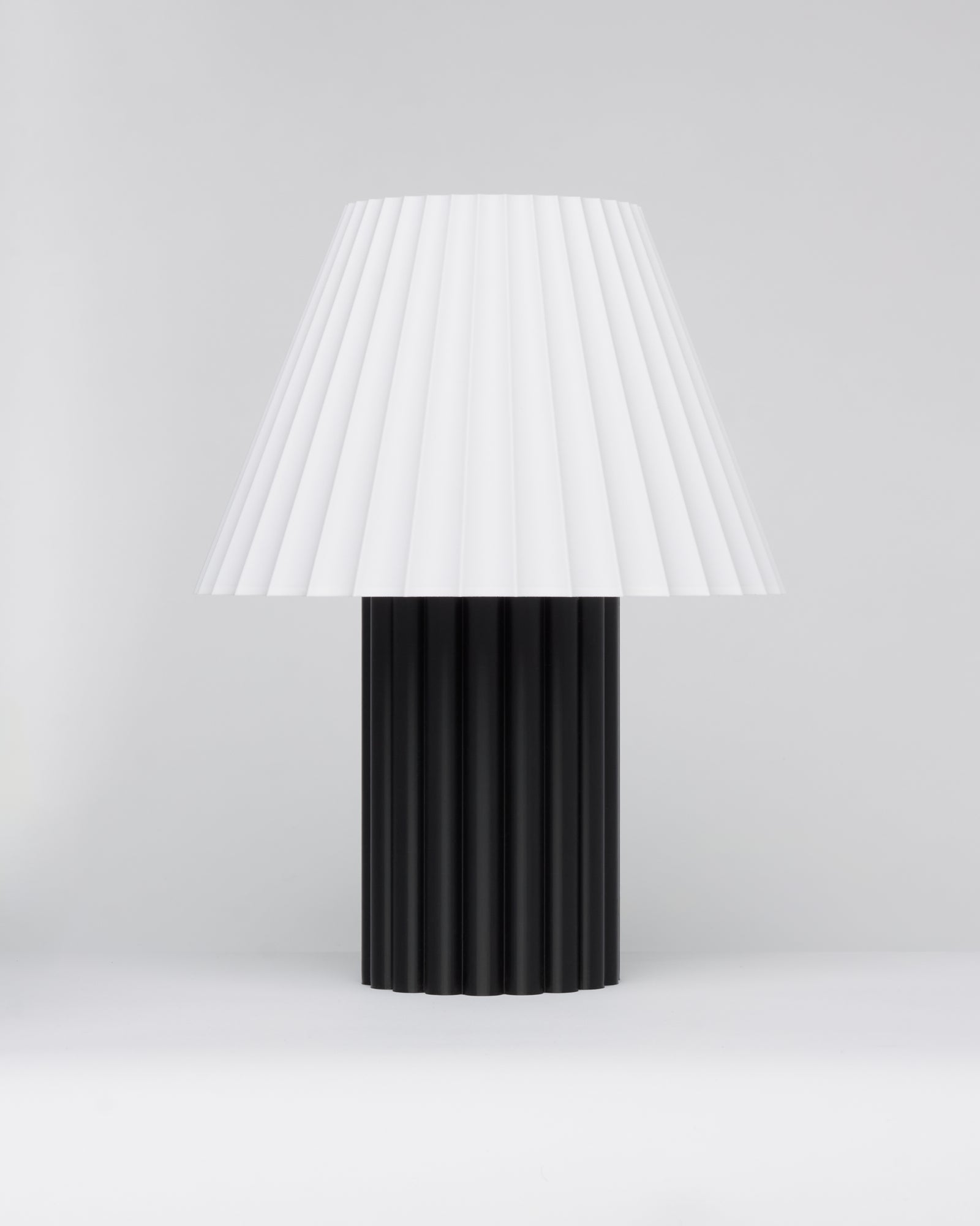 Une mini lampe à l’allure classique, avec un twist moderne. MORA combine un abat-jour plissé et une base noire striée pour une lumière chaude, élégante, et facile à placer partout.